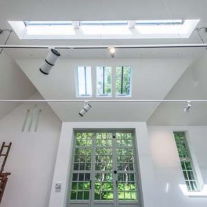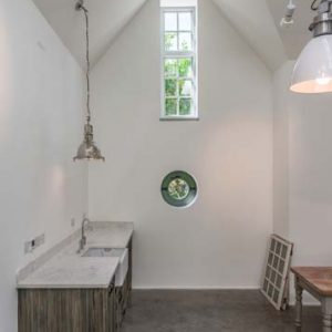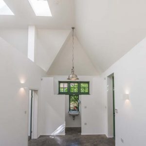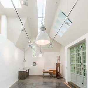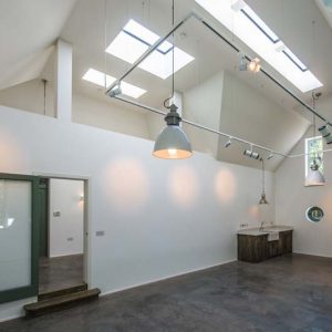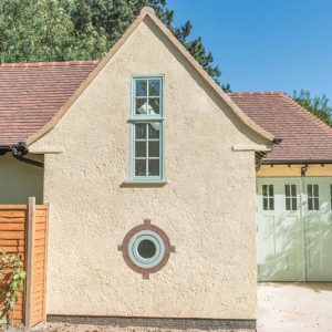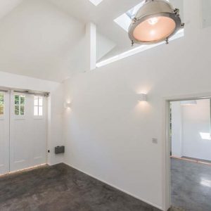 This contemporary outdoors conversion is located to the rear of an existing property, with private road access also available around the back. Its intended to be used as an art studio but also doubles as a garage with space for car parking and guestroom facilities.
